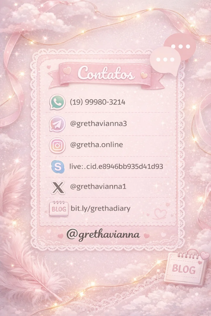 Tenho um cantinho especial onde conto detalhes do meu dia a dia, minhas travessuras, minhas vontades e o que realmente acontece por trás das minhas massagens…
